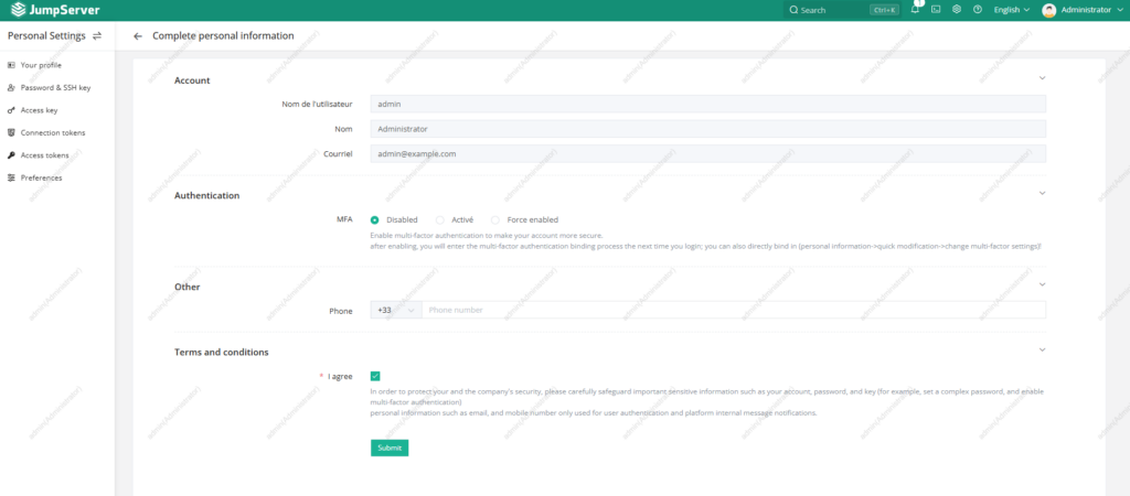 On peut aussi configurer d’entrée de jeu le MFA, via TOTP: