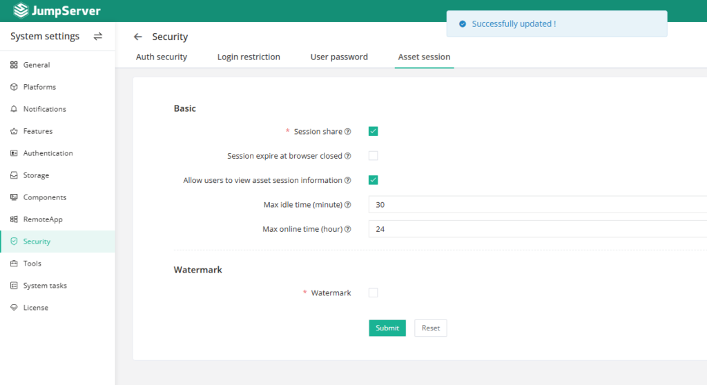 Cela étant dit, on peut facilement le désactiver en nous rendant dans l’onglet Settings, puis Security, et enfin Asset session: