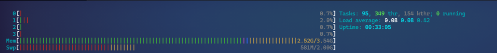 Au niveau performances justement, en IDLE, voilà un CTOP et HTOP: