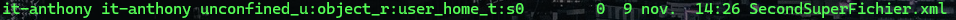 Ici, j’ai fait un simple ls -l pour voir les permissions de mes différents fichiers, et ensuite j’ai rajouté l’argument -Z pour afficher les contextes SELinux. On voit notamment ce truc imbuvable:
