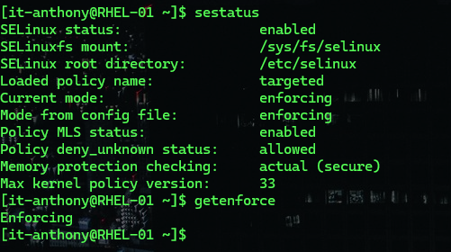 Déjà, de prime abord, si vous souhaitez vérifier si SELinux est activé ou non sur votre OS, et de quelle manière il est activé: